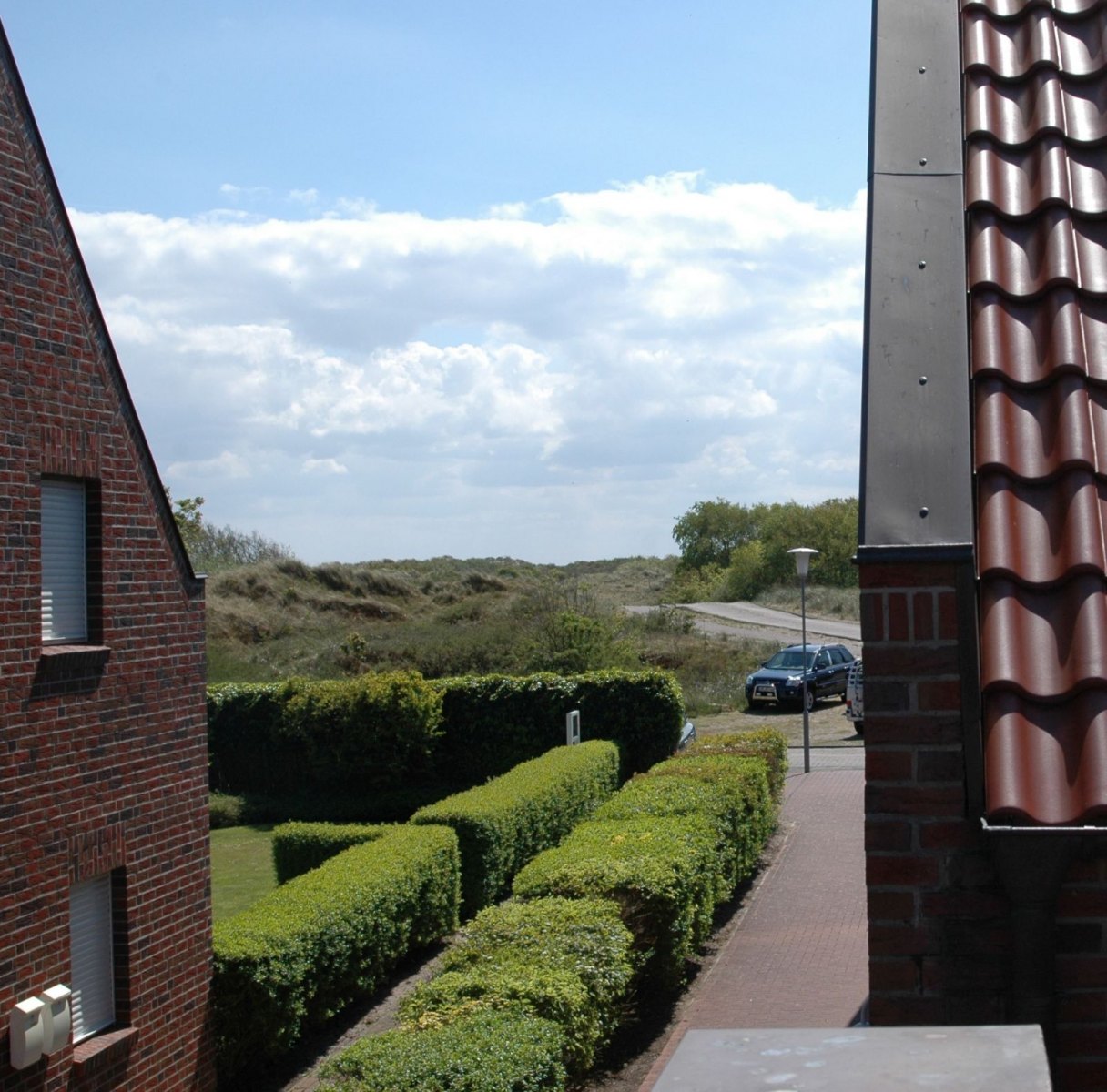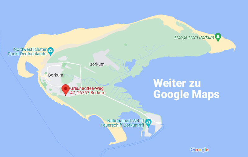 Die Wohnung liegt in der ersten Reihe an den Dünen, unmittelbar am Naturschutzgebiet „Greune-Stee“. Bis zum Strand sind es 200 Meter durch naturbelassene Dünenlandschaft. Den Südstrand erreicht man in 10 Minuten; dort kann man Strandkörbe und -zelte ausleihen.